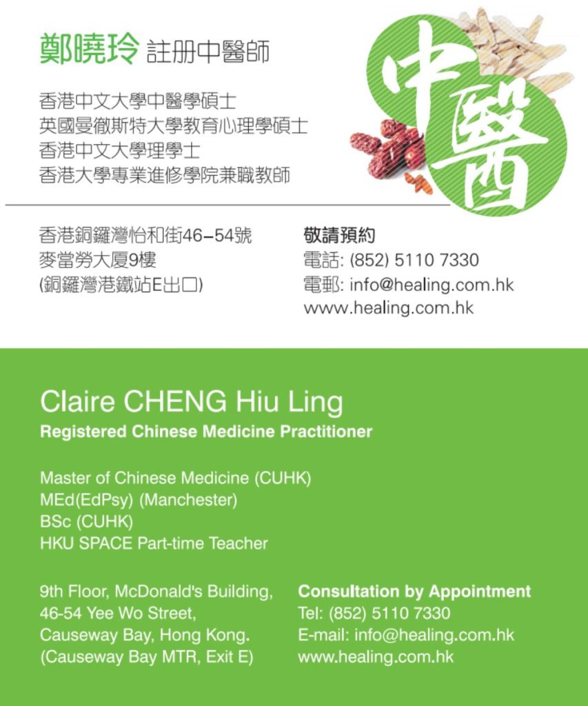 Meet Claire CHENG Hiu Ling, Hong Kong trained and licenced Registered Chinese Medicine Practitioner